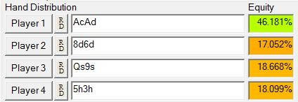 Многие считают, что наличие АА или КК приравнивается к лицензии на печать денег. Но это ошибочное мнение. В действительности же это просто пара сильных стартовых рук, которые выпадают довольно редко (шансы заполучить такие карты равны 220 к 1). В мультипотах на префлопе эквити таких рук может иногда быть меньше 50 %.