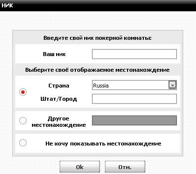 Последний этап регистрации - создание никнейма, под которым вы будете играть за виртуальными столами.