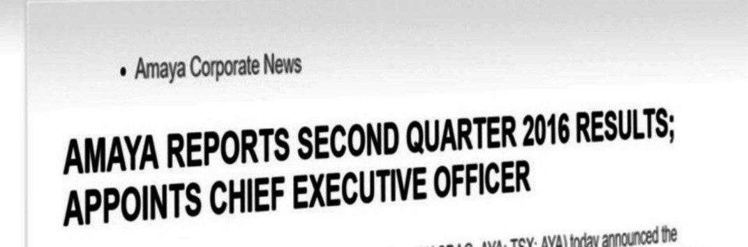 - Обновление состава директоров. После генерального собрания акционеров Amaya в июне 2016 года, было принято решение не рассматривать кандидатур Давида Баазова и Даниэля Сибега на переизбрание в следующем годовом собрании компании, которое состоится в июне 2017 года. Также в компании сообщили, что они все еще готовы к рассмотрению поглощения Amaya Баазовым, как и прочие стратегические альтернативы в интересах инвесторов. С текущего месяца к совету директоров Amaya присоединяются Альфред Харли (Alfred Hurley) и Давид Лаззарато (David Lazzarato), которые вдобавок будут работать в качестве председателей специального Комитета по аудиту и корпоративному управлению. На пост председателя совета директоров был назначен Дейв Гадиа (Dave Gadhia).