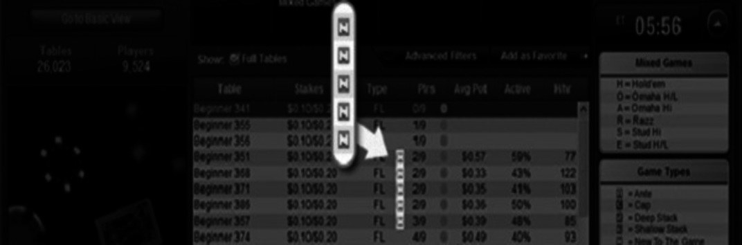 Однако, счетчики кэш-раздач и турниров работают по отдельности. То есть, если игрок уже успел разыграть 2,000 раздач за кэш-столами New to the Game, ему все еще доступно 75 турниров для новичков. Таким же образом происходит разделение для различных форматов кэш-игр. Например, если для игры в Холдем игроку уже необходимо переходить за обычные столы, то, к примеру, для игры в Омаху он еще сможет выбрать стол для новичков.