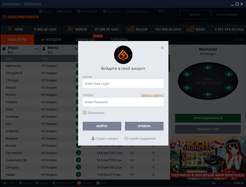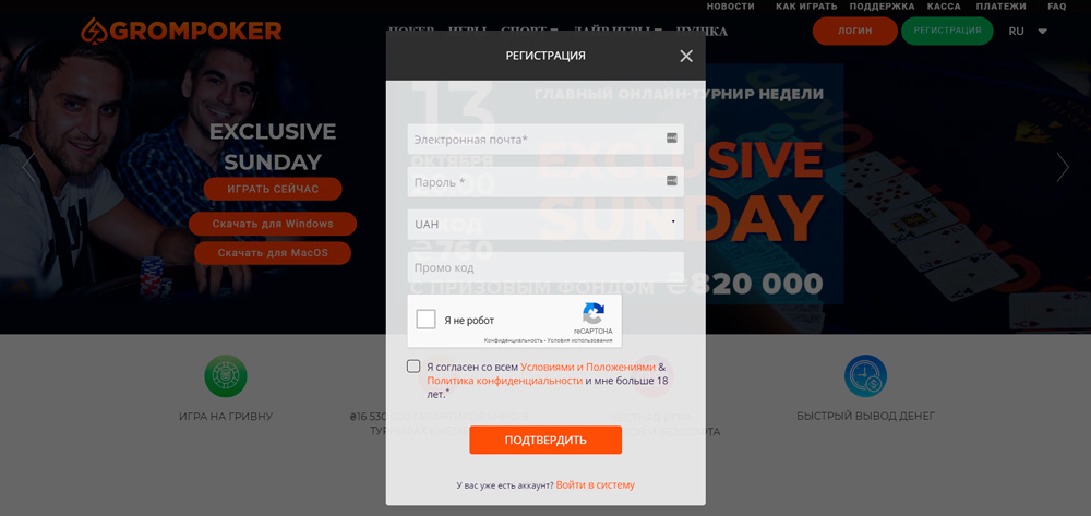 Обзор рума Grom Poker