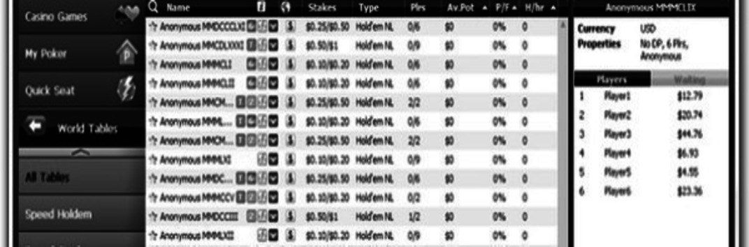 Узнать, что такое анонимные столы, можно на собственном опыте за 6-макс и хэдз-ап столами на лимитах $0.10/$0.20, $0.25/$0.50 и $0.50/$1. Но по некоторым данным, с полноценным запуском новинки анонимные столы будут доступны для лимитов до $100/$200, как впрочем и для ринговых столов на низкие ставки.