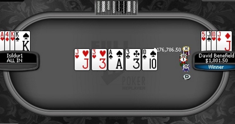 Учитывая данную сессию с Бенефилдом, общее количество рук сыгранное Isildur1’ом за день составило 4,700 на разных лимитах от $25/$50 до $100/$200.