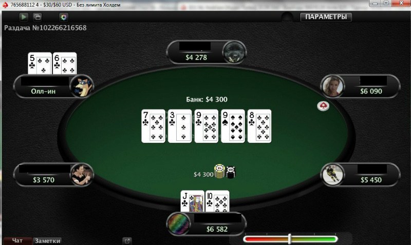 комбинация Straight Flush от 4 до 8 (бубны) в игре на PokerStarsВероятность выпадения