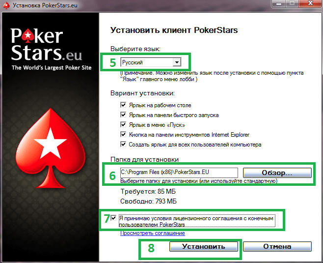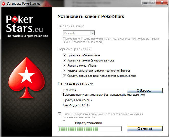 Скачать клиент PokerStars с официального сайта и установить;
