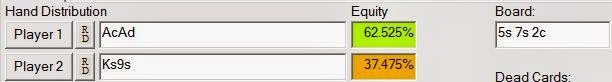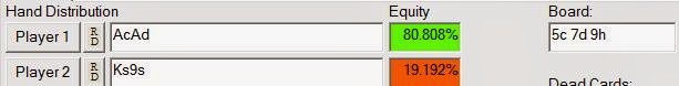 Это просто означает, что вы можете несколько раз проиграть с АА. Такое случается с каждым игроком в покер на планете Земля, который разыгрывает достаточное количество рук. А теперь представим, что у оппонента рука посильнее, к примеру, флеш-дро: